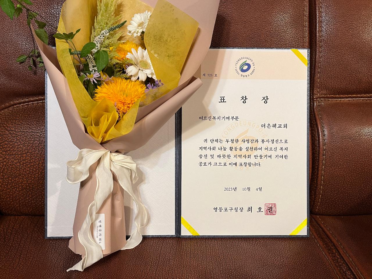영등포구청장상 수상(어르신복지기여 기관/23.10.4)