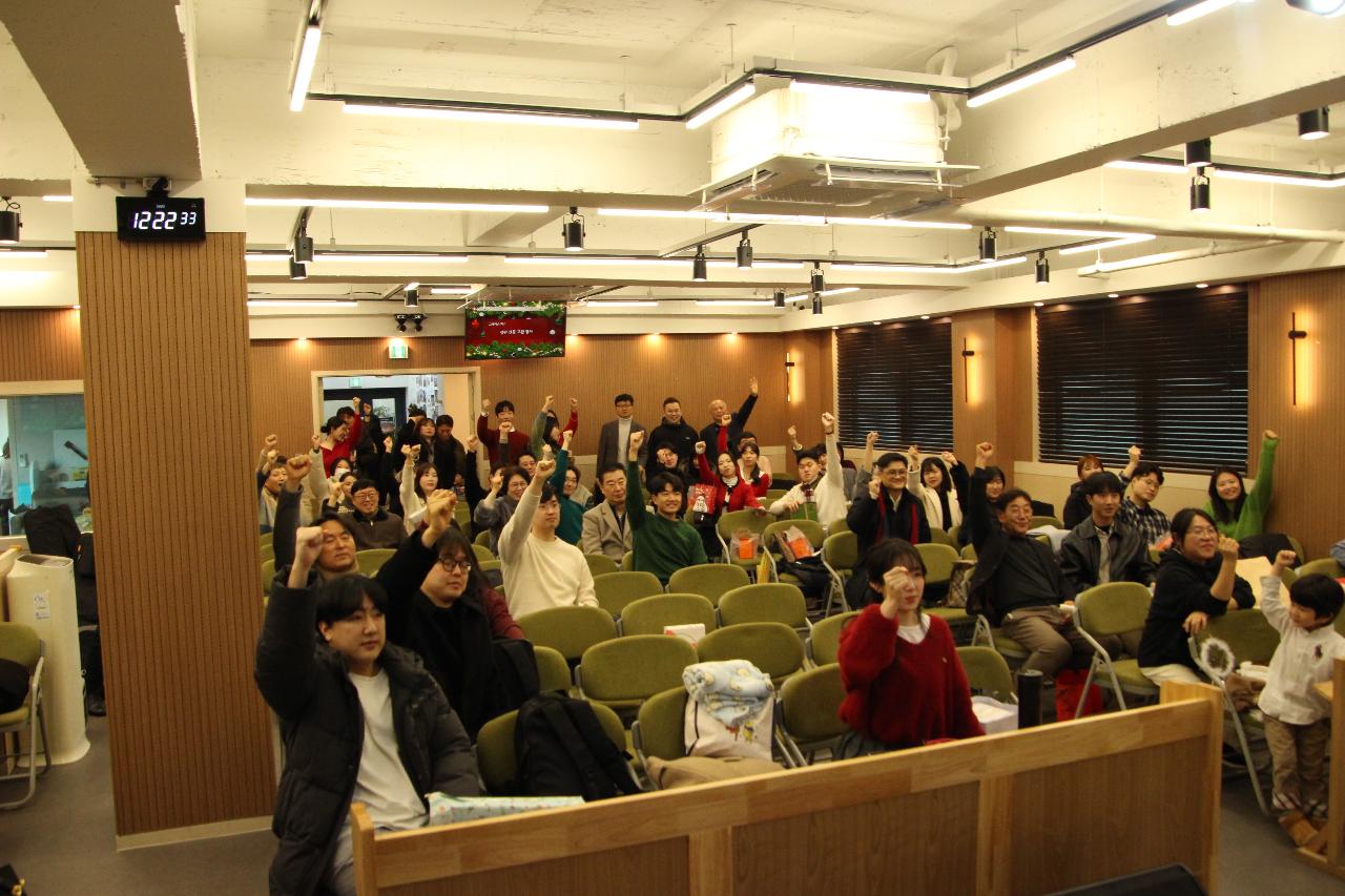 올해도 기쁘고 복된 성탄절을 맞이해서 즐거운 예배와 교제의 시간을 갖었습니다. 특히 황윤하 학생은 입교식을 했고요. 예배 후 '더 그레이스퍼스(선물교환)'와 점심식사는 더은혜 공동체에게 하나되는 즐거움을 주었습니다.