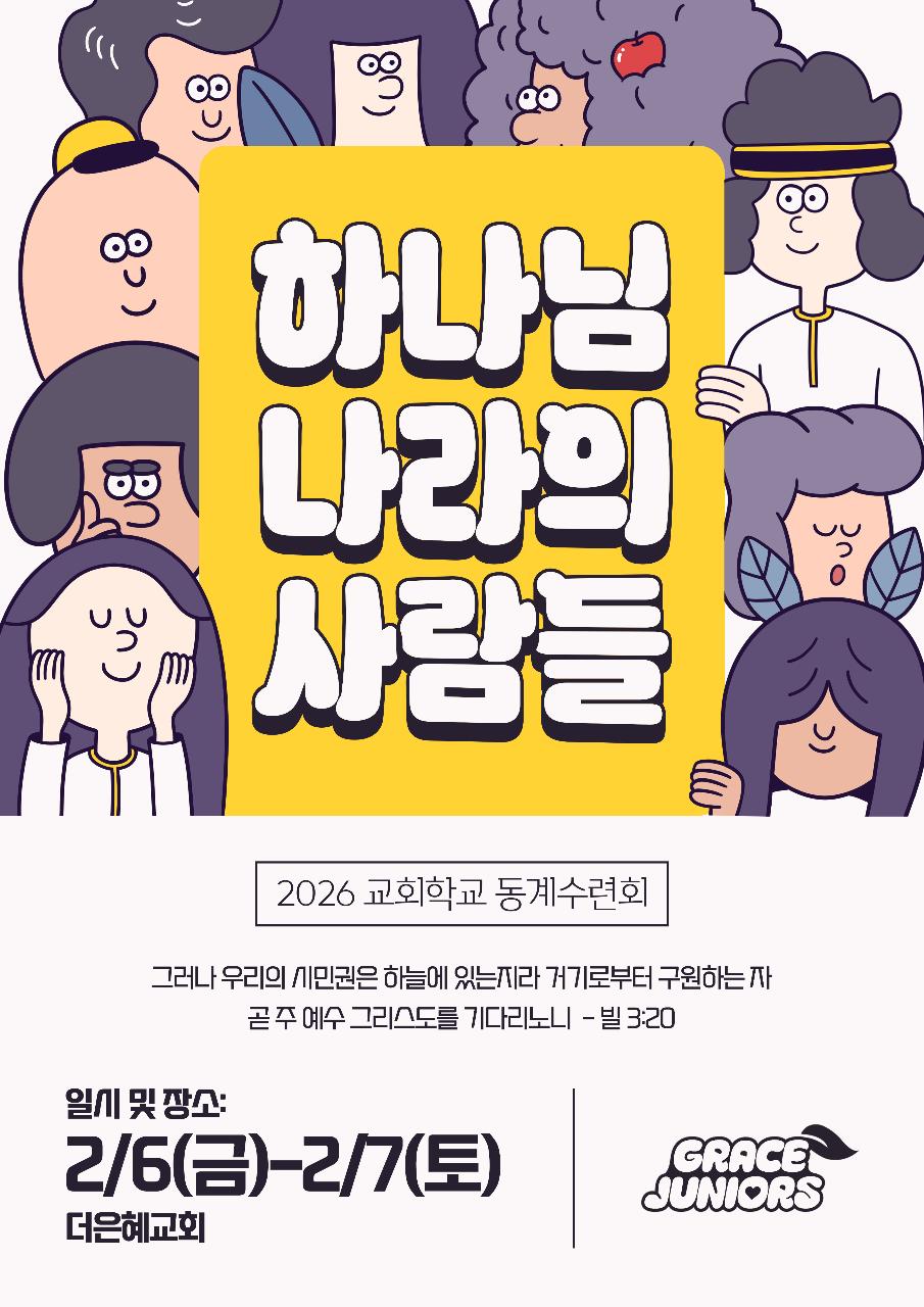 더은혜교회 그레이스쥬니어의 겨울수련회가 2월 6일(금)부터 7일(토)까지 교회에서 진행됩니다.